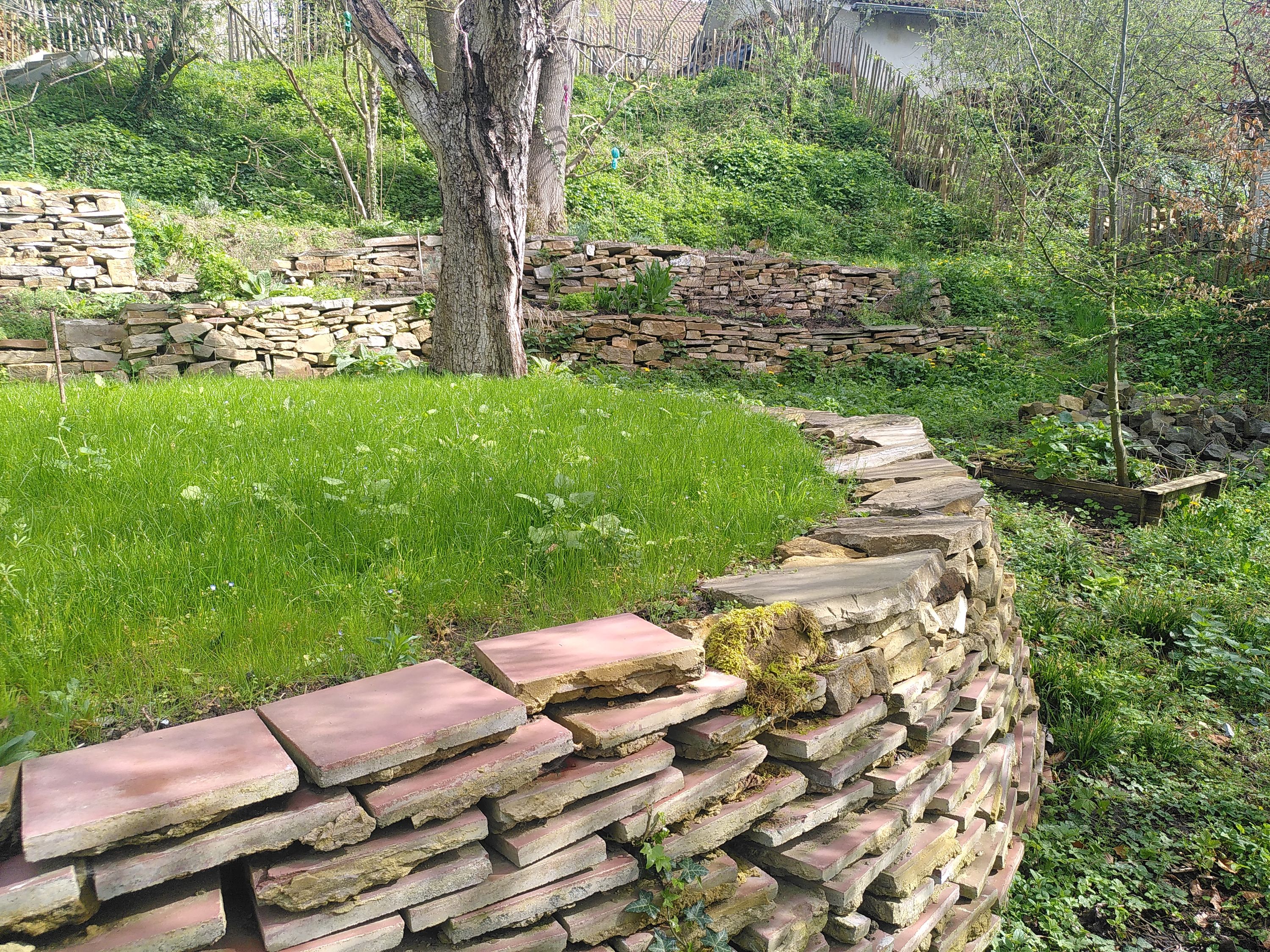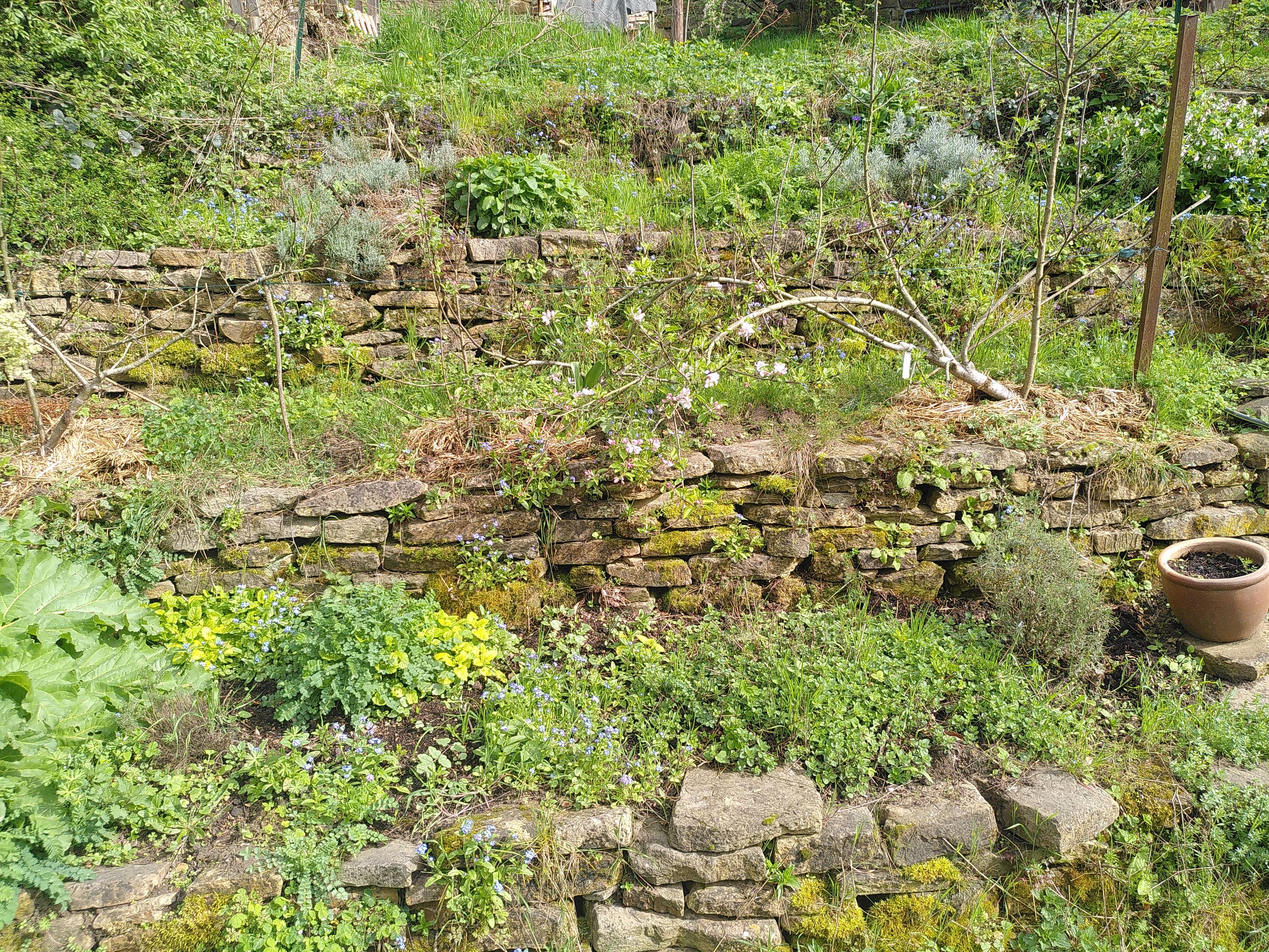Les murs secs sont des empilements de pierres relativement plates ce qui leur confère une très bonne stabilité. Ne nécessitant pas de mortier, ils deviennent rapidement des abris pour la petite faune (reptiles, insectes, rongeurs) et pour de nombreuses plantes de rocailles (fougères, mousses, aromates…) et donc contribuent à ramener de la Vie dans un jardin. Ils peuvent en outre créer des microclimats en abritant des vents ou en stockant la chaleur la journée pour la restituer la nuit ce qui est intéressant pour les périodes de gelées tardives.