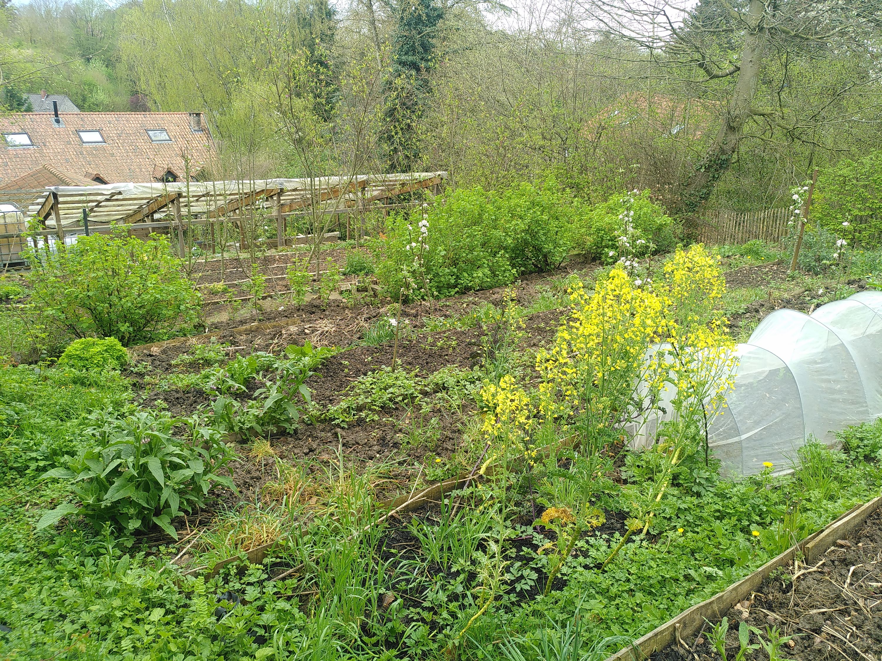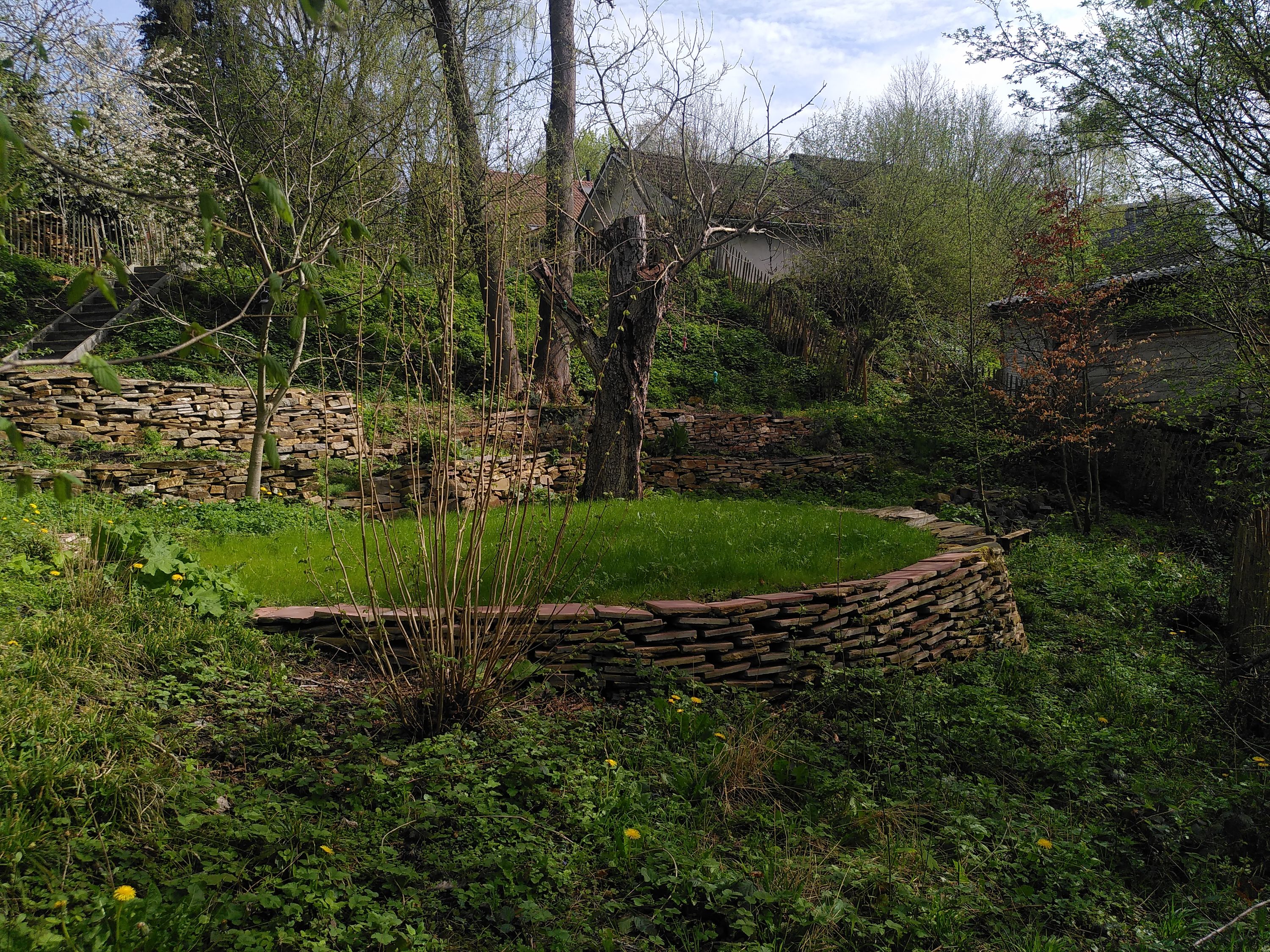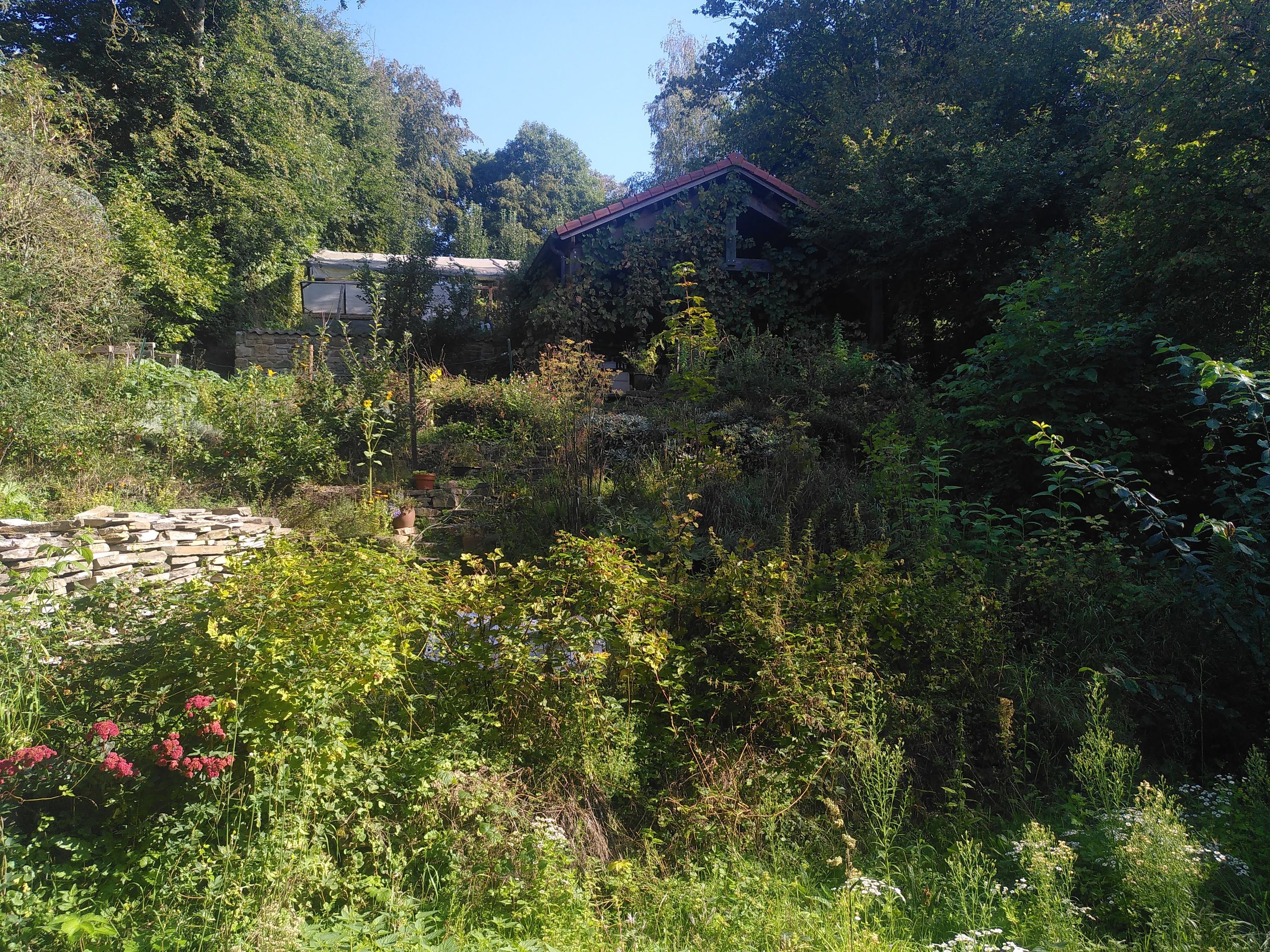 Prés fleuris, construction de murs secs et mise en tas de pierres, fauchages tardifs et exclusivement à la main, cultures potagères et d’aromates sans pesticides ni engrais de synthèse, plantations d’arbres et de haies diverses, paillages et compostages multiples afin qu’aucune biomasse ne sorte du site, clôtures végétales… sont autant de solutions simples et efficaces pour favoriser le retour de la biodiversité dans un jardin. Le résultat est un espace accueillant et apaisant qui requiert moins d’entretien et dans lequel une myriade d’oiseaux chantent au printemps pour laisser la place aux cigales et criquets l’été. Les plantes sauvages font leur retour toujours plus nombreuses années après années, de même que la petite faune comme les hérissons, les salamandres, les crapauds, les orvets ainsi que de nombreux insectes. En bref, moins de travail et d’investissement pour plus bien-être et de diversité.