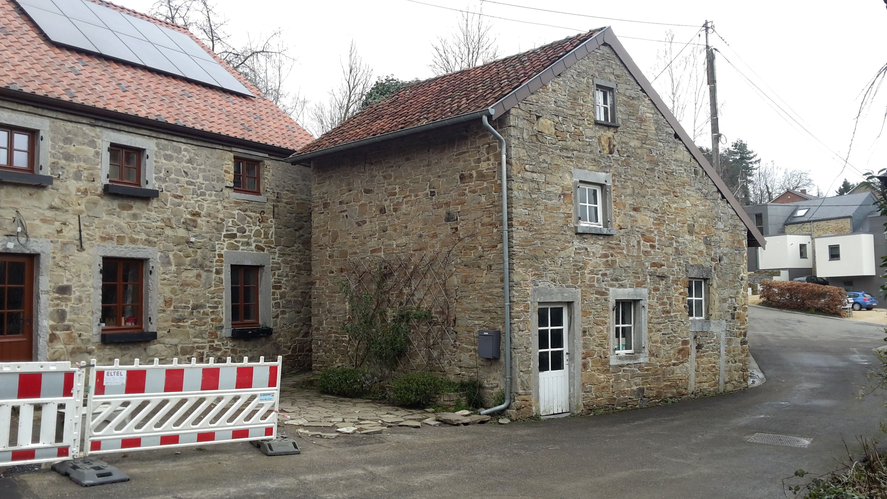Rénovation écologique d’une ancienne grange en vue de créer un habitat kangourou (intergénérationnel). Attentions apportées à la résilience et la sobriété du bâtiment : très basse énergie (36 kWh/m²/an, soit environ une stère de bois pour les 81 m² du bâtiment), ventilation en convection naturelle via un puits canadien, chauffage bois et solaire thermique, autonomie en eau (eau de pluie et toilette sèche), matériaux de réemploi et biosourcés.